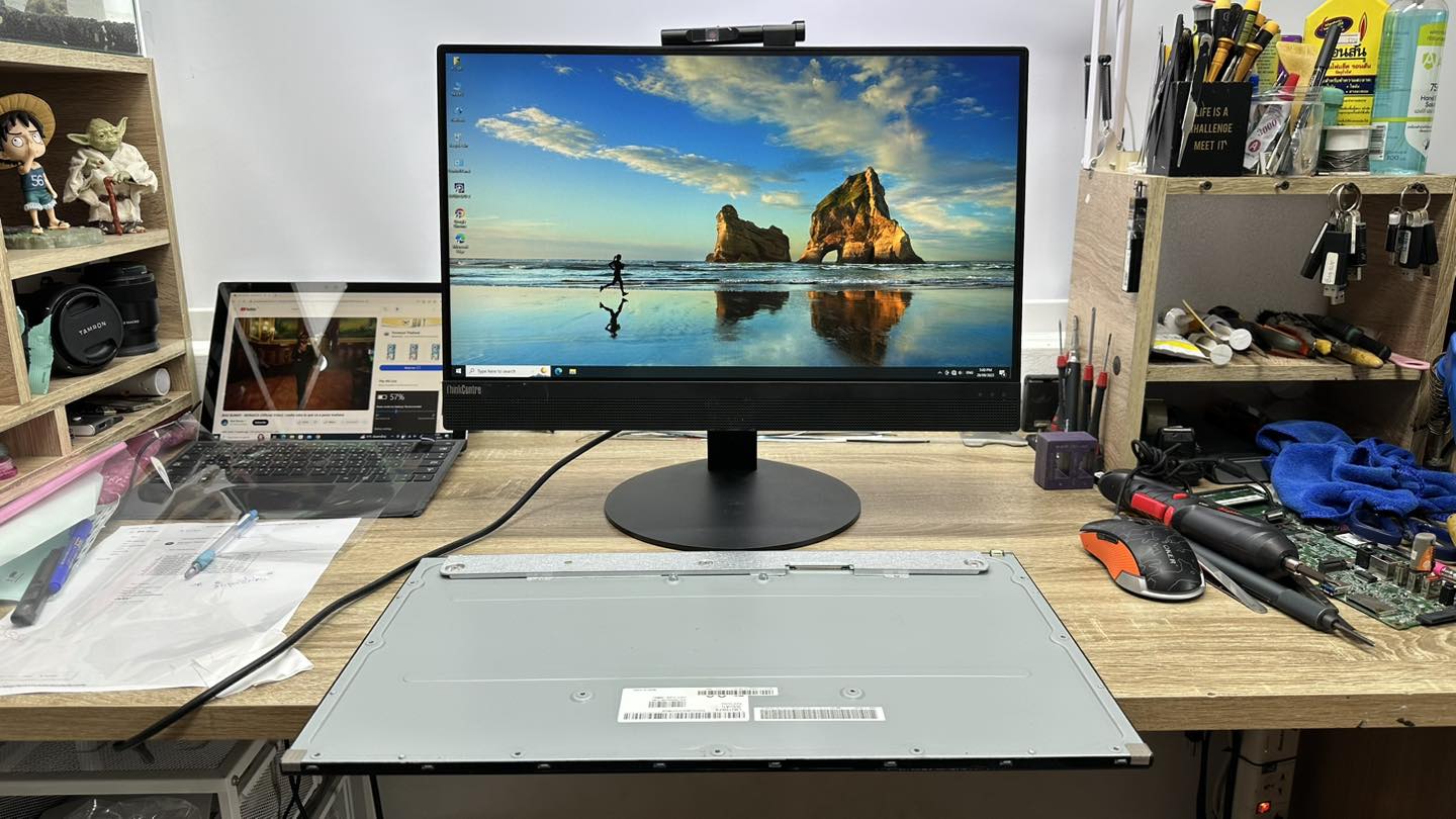เครื่อง All in one มีหลายรุ่นหลายยี่ห้อ แต่ละรุ่นใช้จอไม่เหมือนกัน ซึ่งมีหลายแบบแตกต่างกับตามสเปคของเครื่อง
