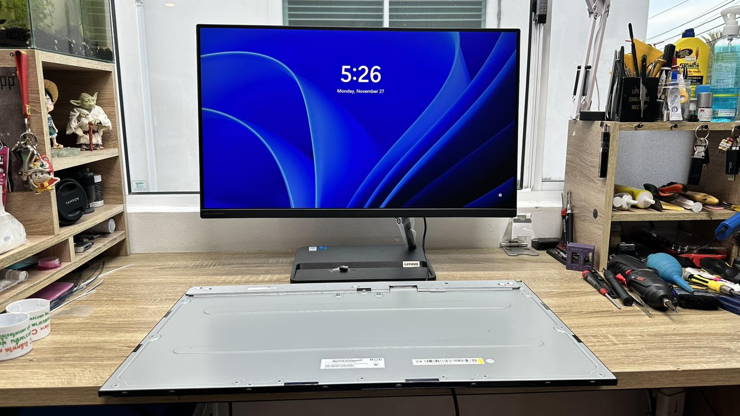 เครื่อง All in one มีหลายรุ่นหลายยี่ห้อ แต่ละรุ่นใช้จอไม่เหมือนกัน ซึ่งมีหลายแบบแตกต่างกับตามสเปคของเครื่อง