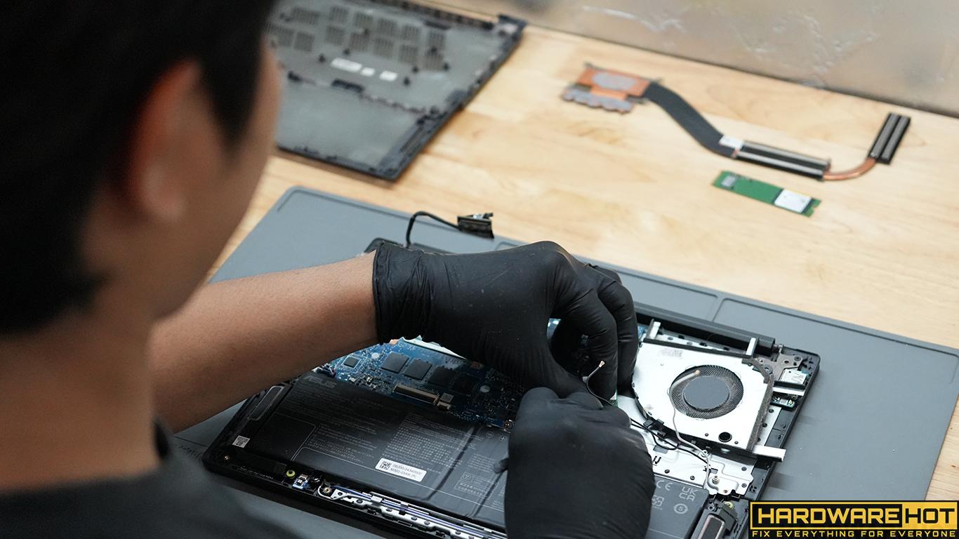 - ถอดสายชาร์จและแบตเตอรี่ออกก่อนเสมอ: นี่คือข้อควรระวังอันดับหนึ่งเพื่อป้องกันไฟฟ้าลัดวงจรและความเสียหายต่อแผงวงจรหลัก (mainboard) สำหรับโน้ตบุ๊กที่ถอดแบตเตอรี่ในตัวได้ยาก ควรหาวิธีถอดขั้วแบตเตอรี่ด้านในออกก่อนเริ่มกระบวนการซ่อมแซม